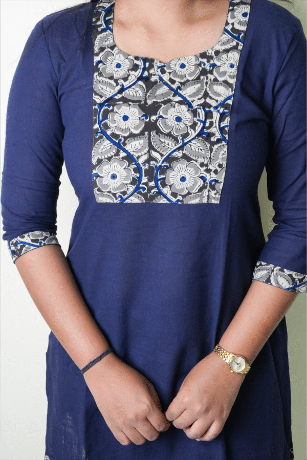 Navy blue kalamkari patch short kurti