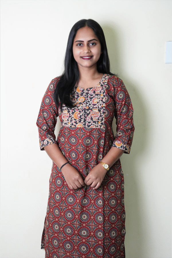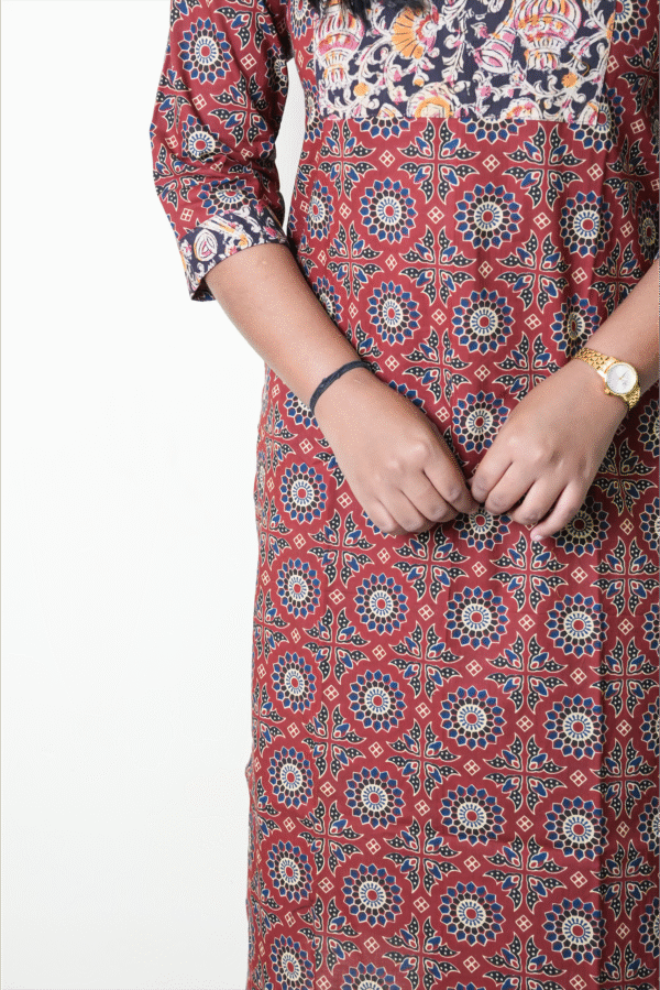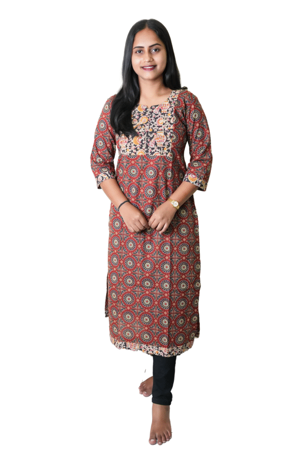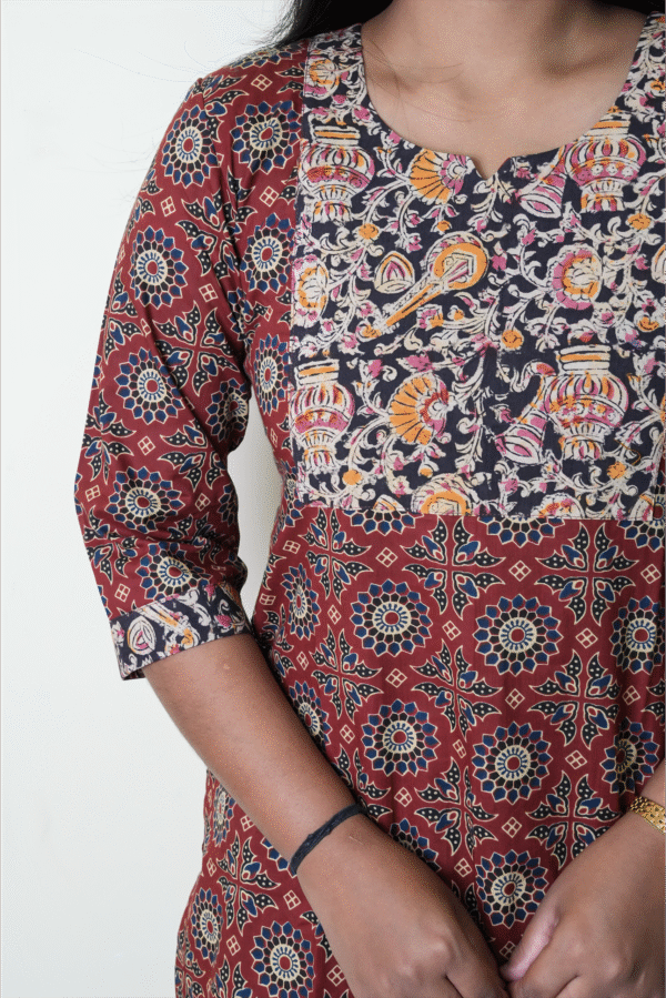 Red with black kalamkari patch kurti